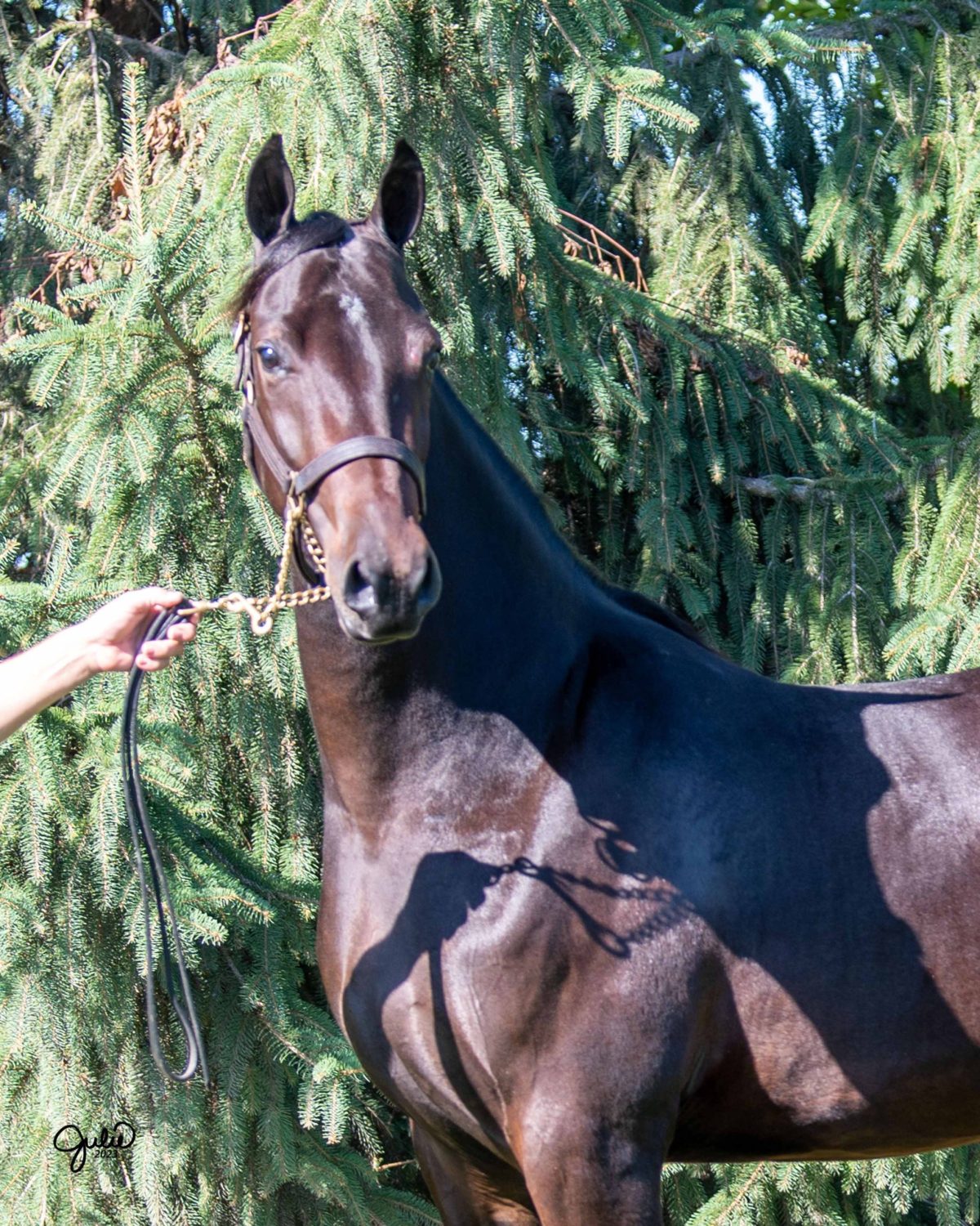 This mare is sired by CAFFEINATED (Spellcaster x Annika), not Caduceus Joshua as the catalog says.